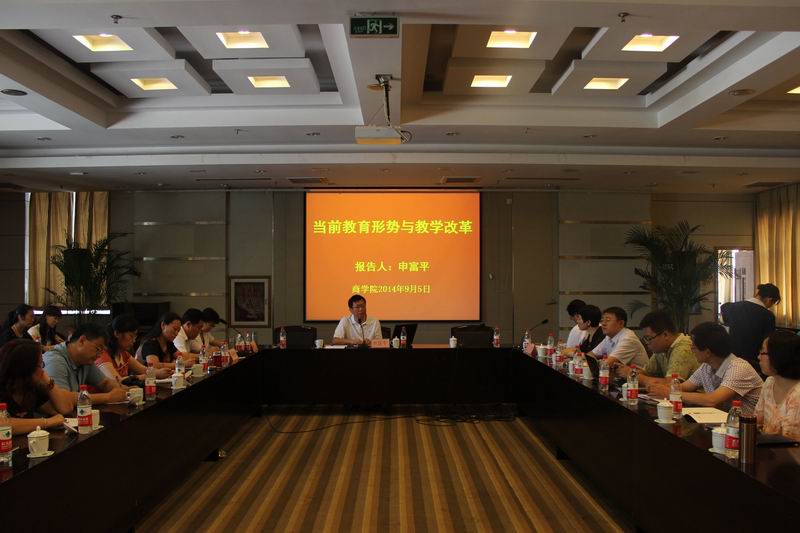 9月5日,商学院邀请校党委常委、副校长申富平教授作题为“当前教育形势与教育改革”的学术报告。报告会由商学院院长王小平主持,商学院班子成员及全体教师参加。