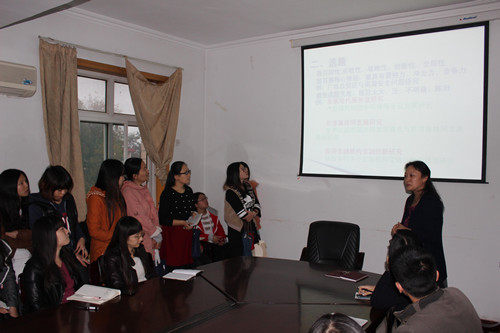 2014年10月28日下午,商学院召开研究生创新计划项目申报指导会,副院长戎素云教授主讲,商学院研究生管理办公室主任程丽梅和全体研究生参加了此次指导会。