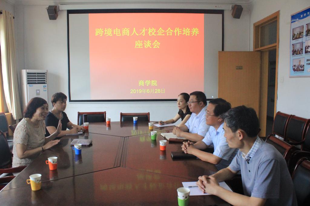 会上,马兵林书记首先对来院座谈跨境电商人才培养的企业表示热烈欢迎。刘会杰总经理就企业发展、外部环境变化、人才需求、职业展望等方面表达了校企合作共同培育跨境电商人才的愿望。刘振滨副院长介绍了目前学院整体发展情况,特别介绍了近几年电子商务与国际贸易专业人才培养情况以及在跨境电商人才培养工作。会议各方就共同推动跨境电商人才培养表达了积极意愿,就近期跨境电商人才培训及企业实践工作进行了磋商。