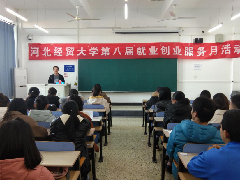 11月25日下午,商学院于北三教B302开展太阳成集团tyc33455ccwww第八届就业创业服务月系列活动暨优秀毕业生经验交流会。学院邀请了2015级电子商务专业优秀毕业生刘鹏博进行经验交流,120多名新生参加。
