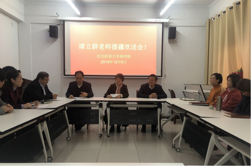 12月5日上午,商学院在学院会议室举办了谭立群老师援疆欢送会。学院领导班子成员、行政人员代表、国贸系教师及其他专业教师代表参加了欢送会。会议由商学院院长王小平主持。