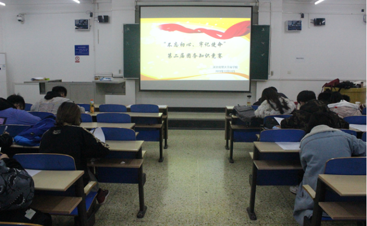 12月12日晚七点,商学院在第三教学楼B301教室举办了第二届团务知识竞赛。本次竞赛契合商学院“不忘初心、牢记使命”主题教育,检验本学期主题教育系列团课的学习成果,为商学院此阶段“不忘初心、牢记使命”主题教育团课系列活动画上一个完美的句号。此次竞赛活动在学院团委指导下进行,商学院大一大二年级各班班长及团干部包括团支书、组织委员和宣传委员共100人参加现场考试测评。