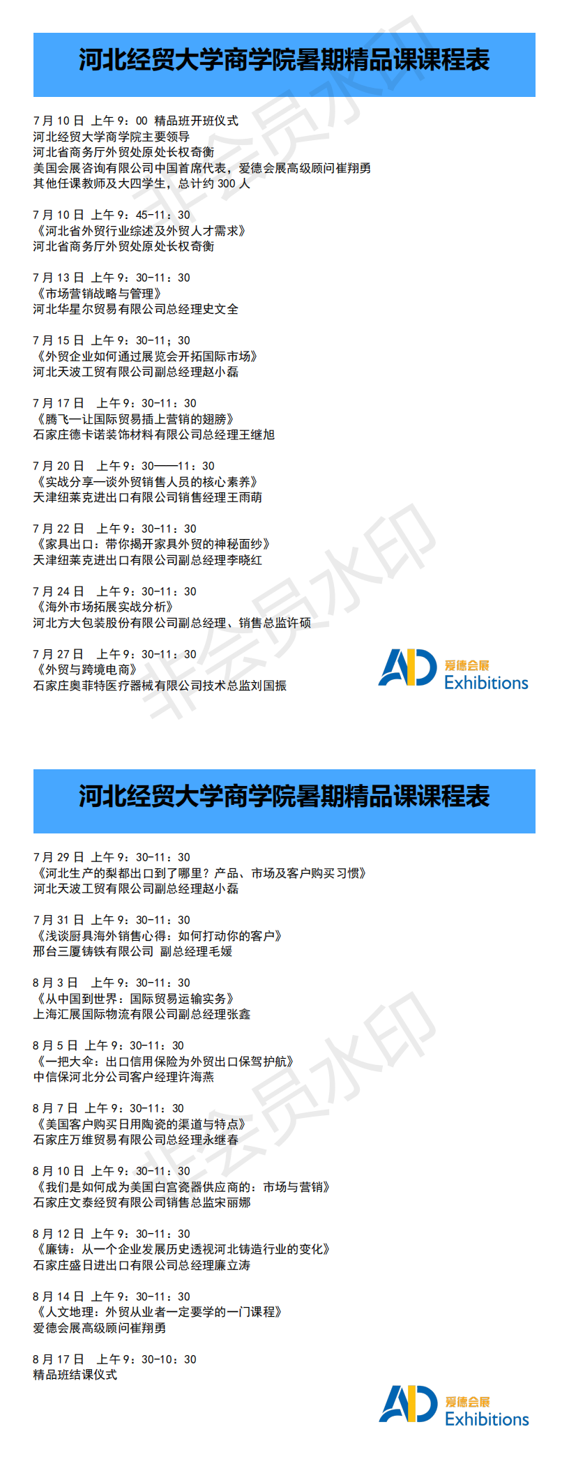 外贸精品班是我院的传统项目,由我院和爱德会展共同发起,旨在为河北省外贸行业定向培养国际贸易人才,解决中小外贸企业人才需求和高等院校毕业生就业需求,是校企合作的又一新模式。本次精品班的授课老师来自政府部门、知名外贸企业以及服务外贸行业的有关公司。授课教师均是从事外贸行业多年的精英人才。本次精品班授课内容以实战为主,突出实务操作。采取线上授课进行,课程设置共16次课,32学时,涵盖市场营销、产品知识、客户洽谈、客户关系、信用保险、出国展览、国际运输、跨境电商等。授课教师将运用丰富的外贸经验,为大家带来最有价值的知识技能。(供稿:商学院)