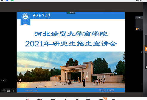 9月25日下午,商学院利用腾讯会议召开了2021年度硕士研究生招生宣讲会。商学院副院长刘振滨、各方向研究生导师代表、研究生辅导员唐洁参加了此次网络招生宣讲。宣讲会由刘振滨主持,来自校内的二十余位考研学生全程参与了此次宣讲。