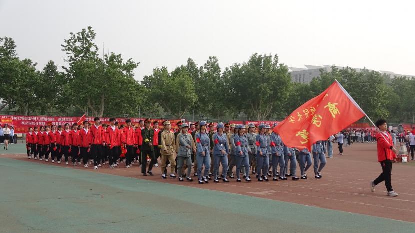 开幕式上商学院方队队们身着红军、八路军、解放军的服装,迈着整齐的步伐,喊着响亮的口号,斗志昂扬,精神饱满,朝气蓬勃,英姿飒爽。他们以整齐的步伐展示必胜的信心,青春焕发的脸上洋溢着刚毅而自信的笑容。传承红色基因,赓续革命血脉,学党史跟党走,商学院向建党100周年献礼。