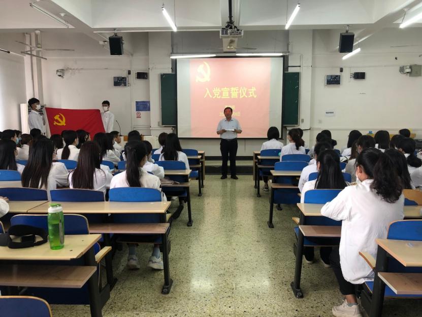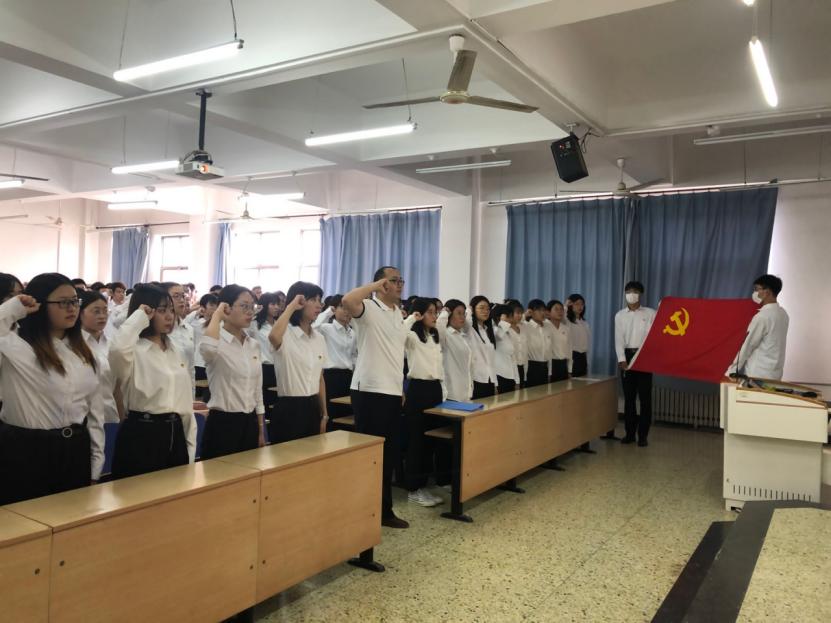 6月8日中午,商学院在北三教B401教室举行学生新党员入党宣誓仪式,商学院党委书记马兵林、党委副书记侯彦利、各学生党支部书记和2021年上半年新发展的学生党员共140余人参加。仪式由学院党委秘书李珊珊主持。