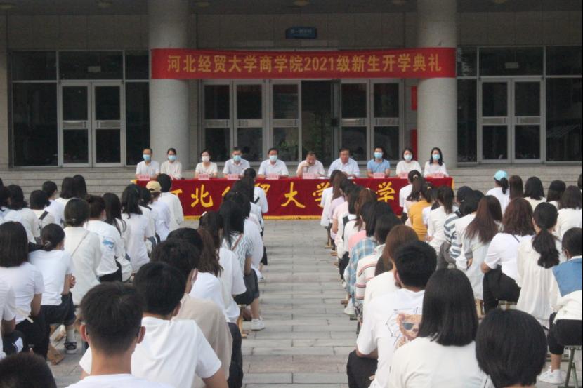 9月14日下午,商学院在第一教学楼前广场举行2021级本科新生开学典礼。学院党委书记马兵林、院长刘华光、副院长刘振滨、副院长马书刚以及学生工作办公室、团委负责人、全体新生辅导员和380余名新生参加。刘振滨主持典礼活动。