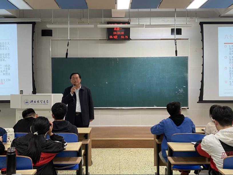 马兵林系统讲解了习近平新时代中国特色社会主义思想的核心内涵、党史学习教育的重要意义与目标要求、习近平总书记“七一”重要讲话精神等三部分内容。他向同学们展示了中国进入新时代的巨大变化,阐明了中国共产党的历史使命,解读了习近平新时代中国特色社会主义思想体系的“八个明确”和“十四条基本方略”。他指出,开展党史学习教育是牢记初心使命、推进中华民族伟大复兴的必然要求,是坚定信仰信念、在新时代坚持和发展中国特色社会主义的必然要求,是推进党的自我革命、永葆党的生机活力的必然要求。鼓励同学们从党史学习教育中汲取精神力量,坚定理想信念,切实做到学史明理、学史增信、学史崇德、学史力行。他详细解读了习近平总书记“七一”重要讲话精神,回顾了党的百年历程和伟大成就,阐释了伟大的建党精神和在长期奋斗中形成的中国共产党人的精神谱系,并以此勉励同学们弘扬光荣传统、赓续红色血脉,践行“九个必须”。