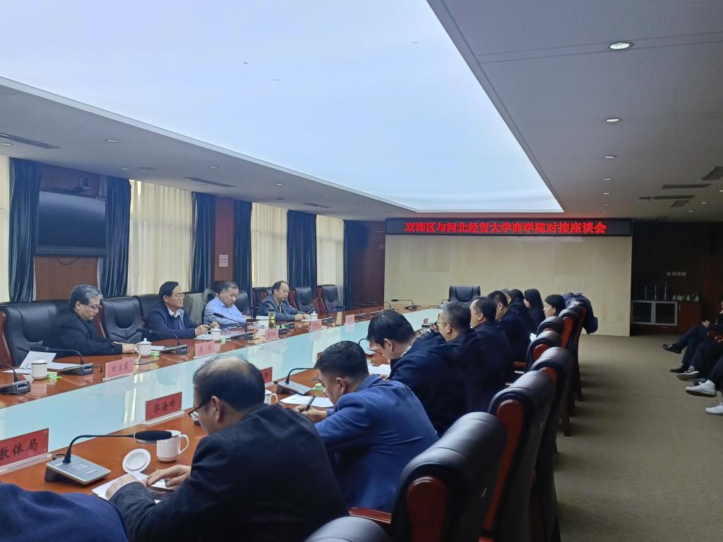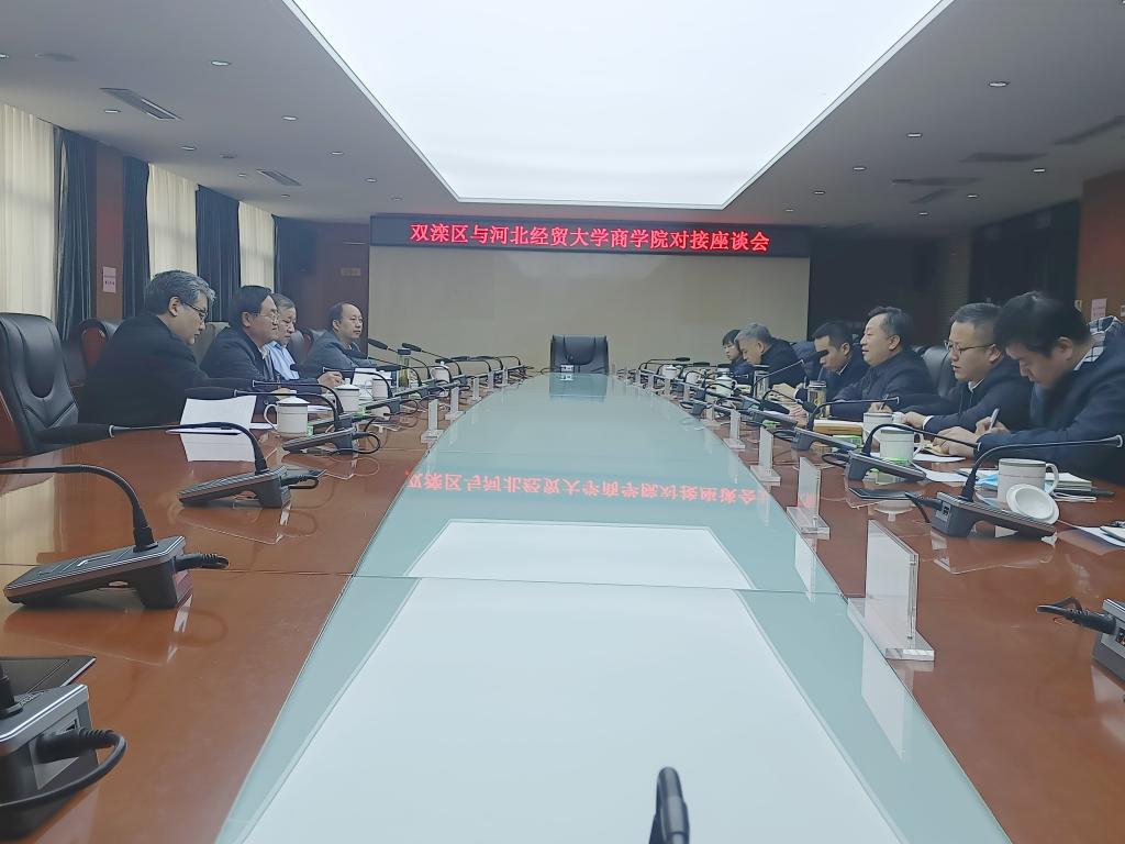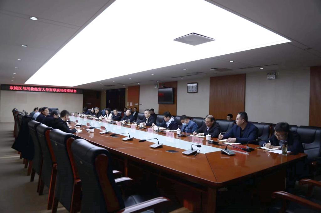 为进一步推进我校服务河北省县域经济社会发展工作,3月26日,商学院党委书记马兵林、院长刘华光等一行5人赴承德市双滦区对接座谈,双滦区委书记张抗震,区委副书记、区长辛国勇,区委常委、区委办公室主任吴磊,副区长李新、揣艳敏及相关部门领导参加座谈。