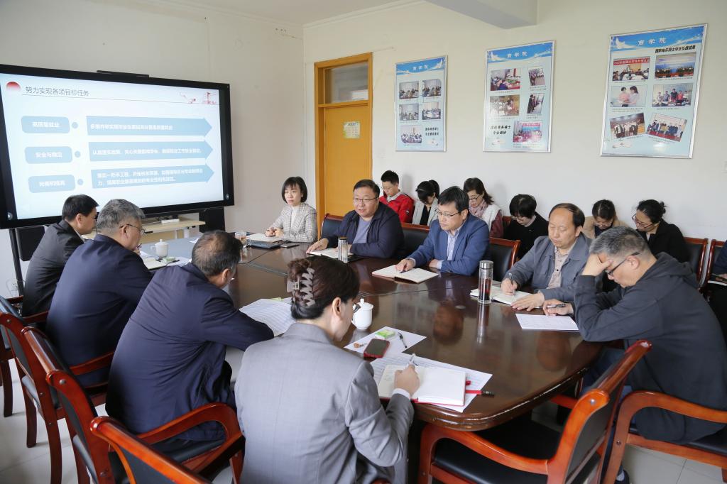 4月10日,校党委书记刘兵、党委副书记张秀山带领就业指导服务中心负责人到我院调研学生就业与职业愿景引领工作。太阳成tyc33455cc班子成员、系主任代表、毕业班全体辅导员参加了本次调研座谈会。