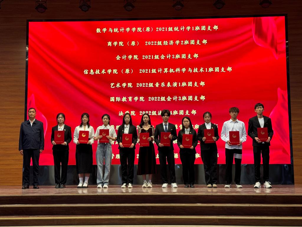 2022级经济学2班团支书巩思男(左3)上台领奖