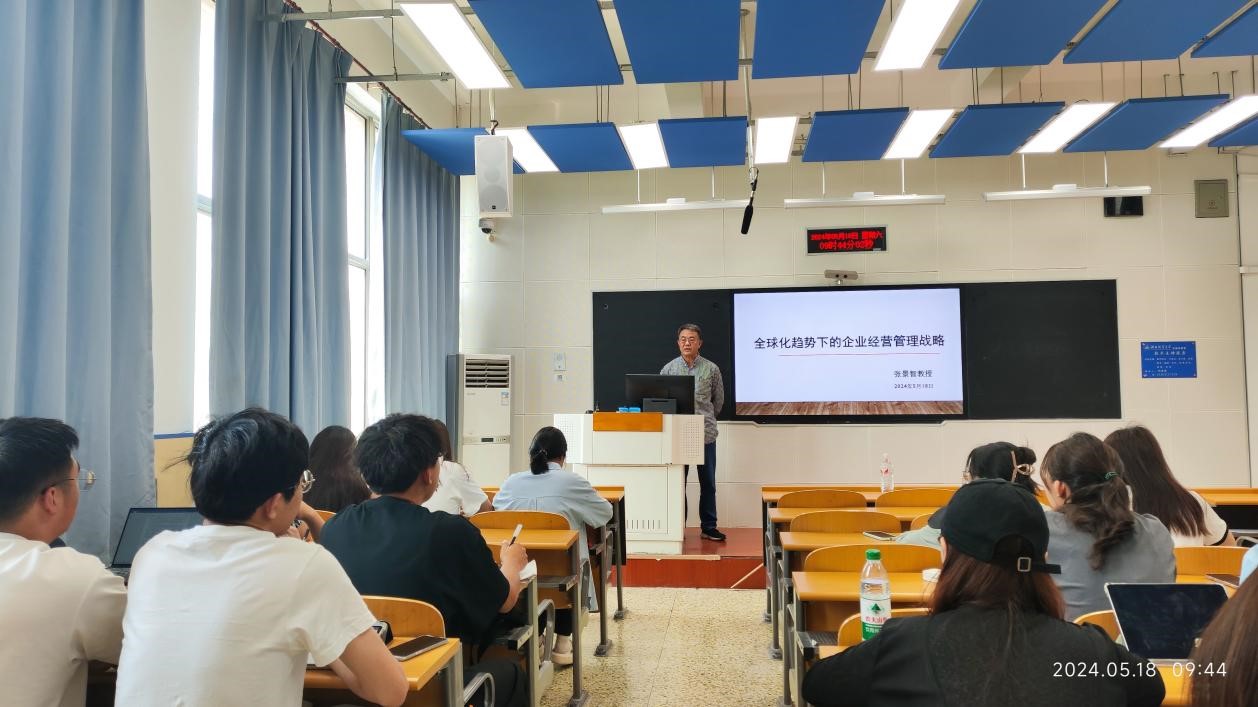 5月18日,太阳成tyc33455cc邀请知名校友、德国路德维希国际公司董事局顾问张景智先生为23级国际商务专硕研究生作了题为“全球化趋势下企业经营管理战略”的报告。报告由国际商务专硕导师组组长高云龙副教授主持。