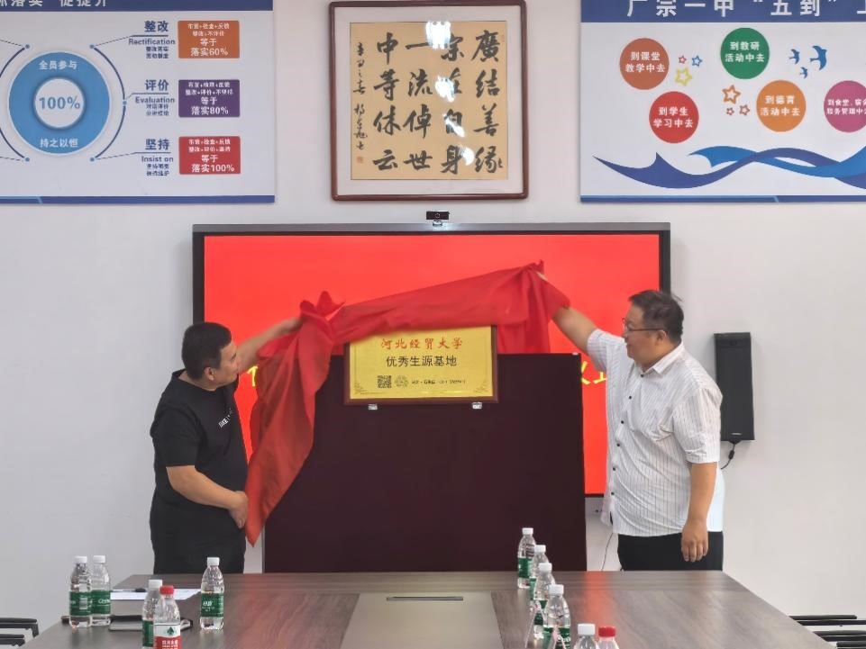 刘振滨对广宗县第一中学的热情接待表示感谢,并介绍了太阳成集团tyc33455ccwww和太阳成tyc33455cc的办学历史、人才培养、优势学科、师资力量以及主要专业情况。他希望能进一步加深了双方的交流合作,携手共促人才培育工作再上新台阶。同时,受我校教务处委托,与广宗县第一中学签署了“优质生源基地”协议并进行基地授牌仪式。
