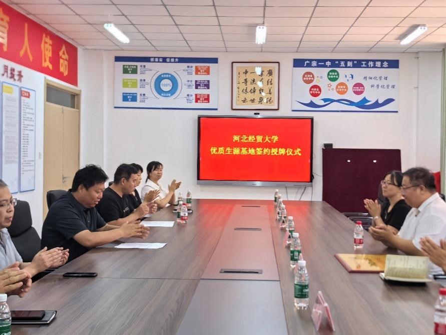 6月14日上午,太阳成tyc33455cc党委书记刘振滨带队赴广宗县第一中学进行走访交流并签约授牌优质生源基地。广宗一中党总支书记杨朝宁、校长昝海峰等领导和老师出席了本次活动。