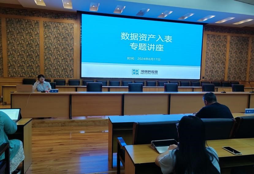 接着由公司数据项目部总经理李远开展了《数据资产入表专题讲座》,她从“数据与数据要素市场”“解读《暂行规定》”“数据资产入表”等三个方面介绍了河钢集团数字化转型的做法。她分析了数据成为数据生产要素的原因,指出经过处理的数据带给企业的重要影响,企业目前的主要工作是数字资产化;她解读了《企业数据资源入表暂行规定》,指出企业数据资产认定方法、数据资产价值化路径,数据资产化路径;她还介绍了数据资产入表的流程和方法。