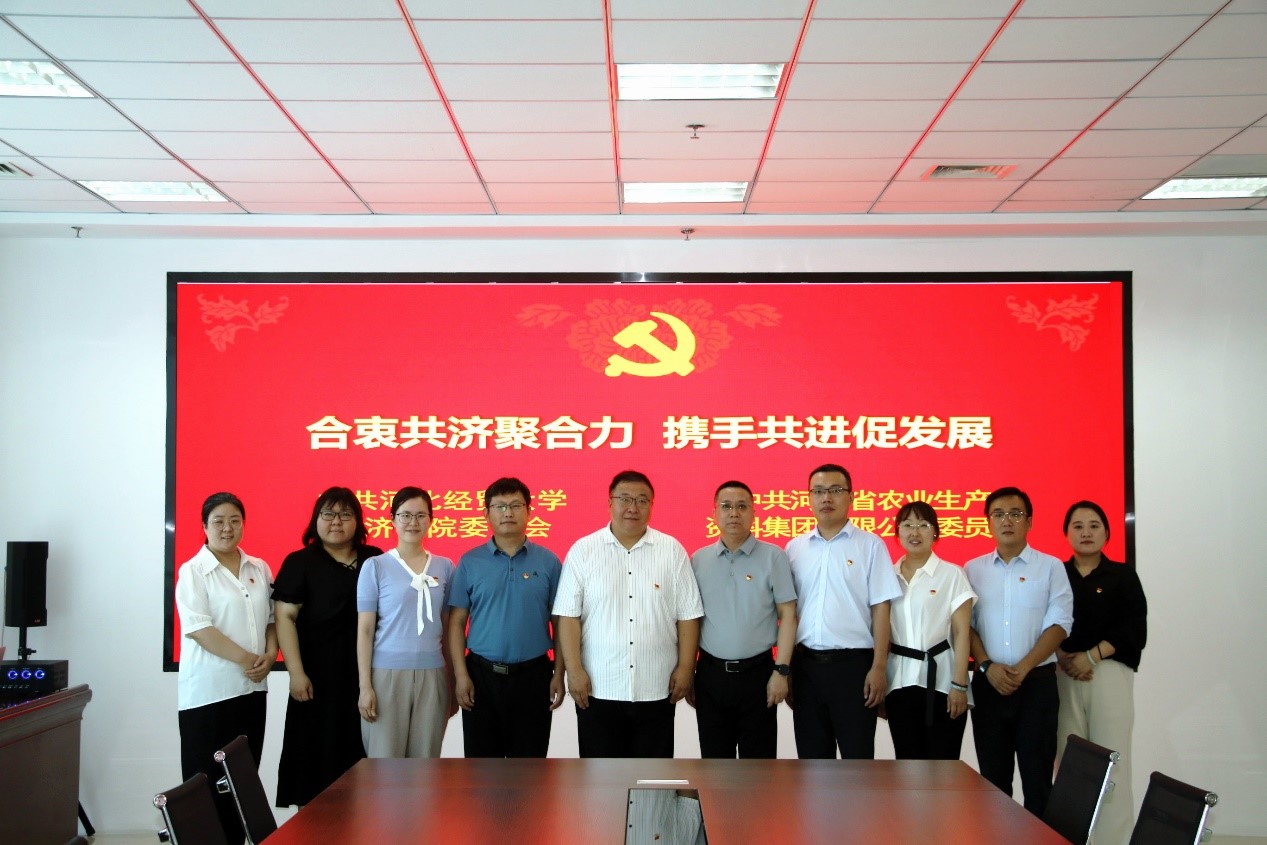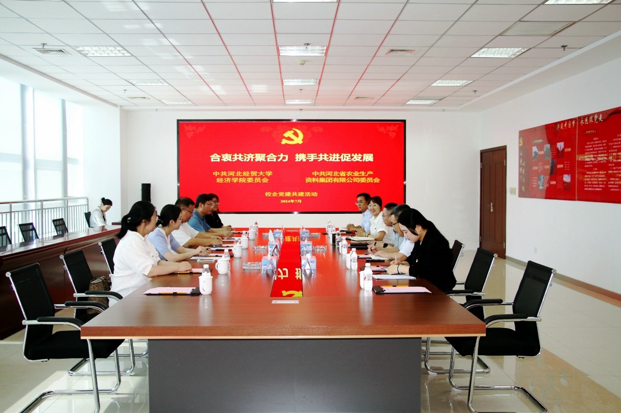 7月19日上午,太阳成tyc33455cc党委与河北省农业生产资料集团有限公司党委联合开展“合衷共济聚合力 携手共进促发展”主题校企党建共建活动。太阳成tyc33455cc党委书记刘振滨、院长王重润、贸经教工支部书记杜颖、贸经系副主任孙玉竹、支部组织委员李振宏,河北新合作控股集团副总裁李金忠、省农资集团副总经理赵利强、副总经理韩会军、党办主任袁姣、资金营运部经理王潇参加了本次党建共建活动。