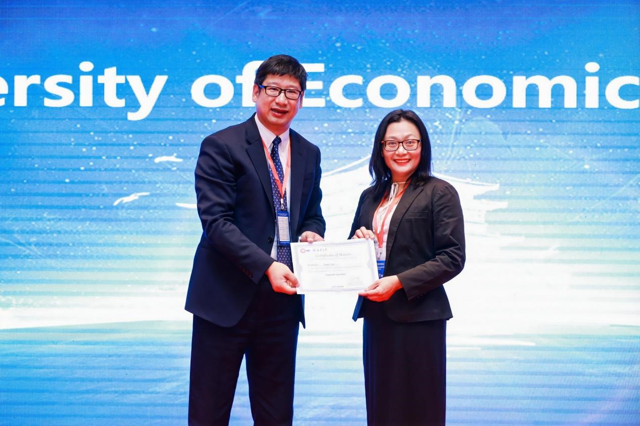 会上,本科生张靖博用英文阐述论文——《"Integration of technology and finance", green development and urban digital finance development》,描述了他对科技金融与数字金融的研究,报告了科技金融与金融科技的机制机理。该文章受到了评委专家的认可,并提出了进一步的修改意见,最后授予张靖博会议证书。