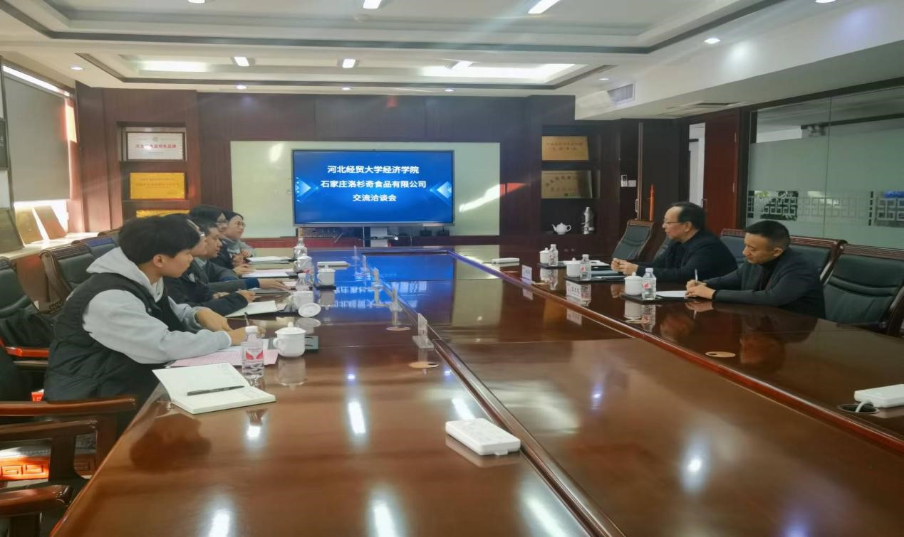 调研团队获得了洛杉奇公司郝孟刚副总经理和王玉龙经理的热情接待,双方进行了深入的交流。柴国俊介绍了调研背景和目的,郝孟刚对金凤扒鸡的品牌发展、市场拓展以及创新传承等方面做了深入阐释,贸易经济系和国际商务专硕成员也就洛杉奇公司的财务状况、经营发展、产科教融合议题进行了积极的互动。院企双方愿意基于访企拓岗和学生竞赛的前期基础,在产科教融合方面走深走实。