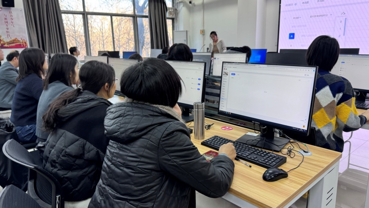 曹丽博老师首先介绍了智慧课堂的定义,从内容组织形式,教学辅助工具,学习知识,教学评价的智慧化几部分来深入加深教师对智慧课堂的认识。随后,通过现场操作演示和实际操作指导,向教师们展示了如何利用手机和电脑客户端操作相结合的方式,在平台上进行线上教学、作业布置与批改以及学生互动等。接着,说明知识图谱、问题图谱、能力目标图谱的使用方法。介绍了学习通的AI工具,如AI课件、翻译、影像、文献等,并通过实际案例的展示,使教师们认识到AI工具在提升教学效率、丰富教学手段以及优化学习体验等方面的重要作用。