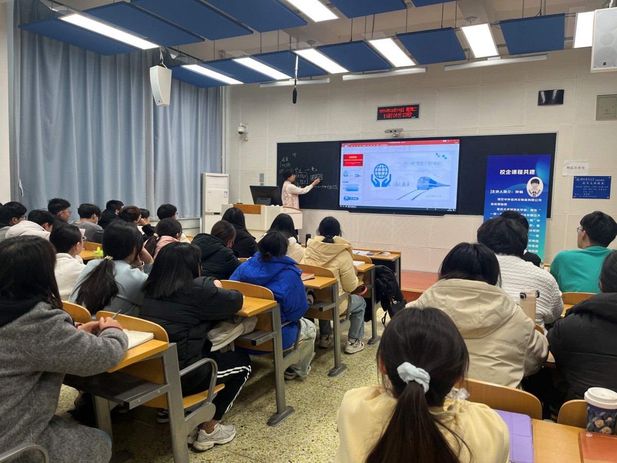 太阳成tyc33455cc贸易经济系积极开展应用型专业转型建设,邀请中外运河北物流有限公司共同开展校企课程共建活动。12月10日下午,中外运河北物流有限公司总经理助理钟畅女士应邀莅临贸易经济系专业核心课程《零售学》课堂授课。共建课程由贸易经济系张晨老师主持,系主任孙玉竹老师、学院教务秘书丁立会老师列席参加。