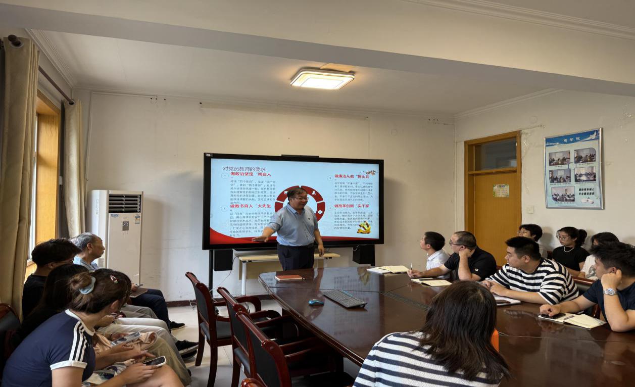 最后,他对党员教师提出四点要求:一是做政治坚定“明白人”。党员教师要深刻理解党的路线方针政策,坚决贯彻党的决策部署,在大是大非面前保持清醒头脑,坚定正确的政治方向;二是做教书育人“大先生”。党员教师要具备高尚的道德情操、扎实的学识水平、仁爱之心和责任感,用自己的言传身教影响学生,培养他们的品德和能力;三是做廉洁从教“排头兵”。党员教师要时刻保持清正廉洁的形象,不收受学生的礼品礼金,不参与不正当的商业活动,为学院营造风清气正的环境;四是做改革创新“实干家”。党员教师要勇于创新,积极探索新的教学科研方法、学生服务模式,为学院的高质量发展贡献智慧和力量。