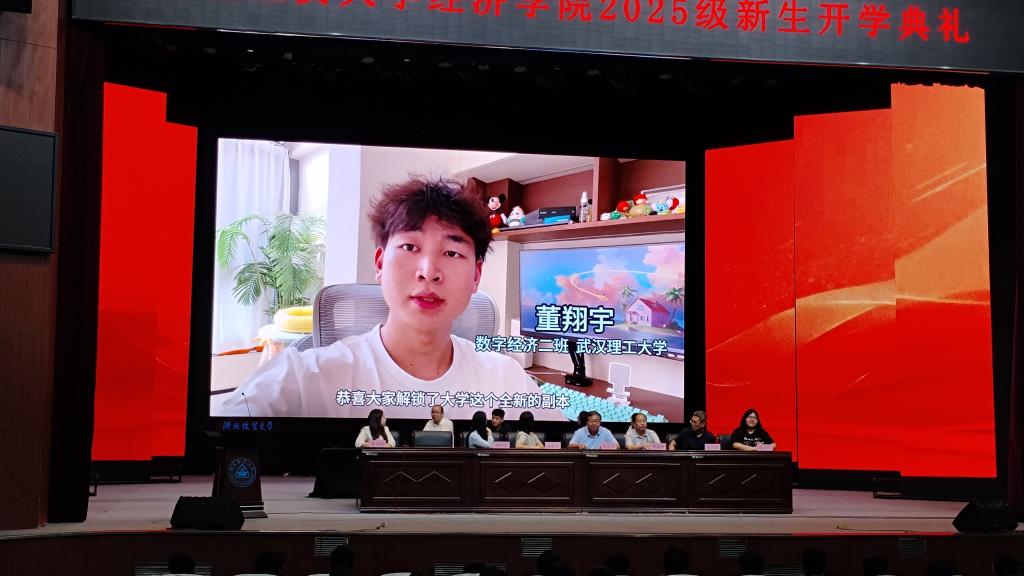 现场还播放了2021级毕业生为新生录制的祝福视频。视频中,学长学姐们分享了自己的大学感悟与职业发展经历,为新生们送上了“珍惜时光、勇敢探索”的寄语,让新生们感受到了经院大家庭的温暖与传承。