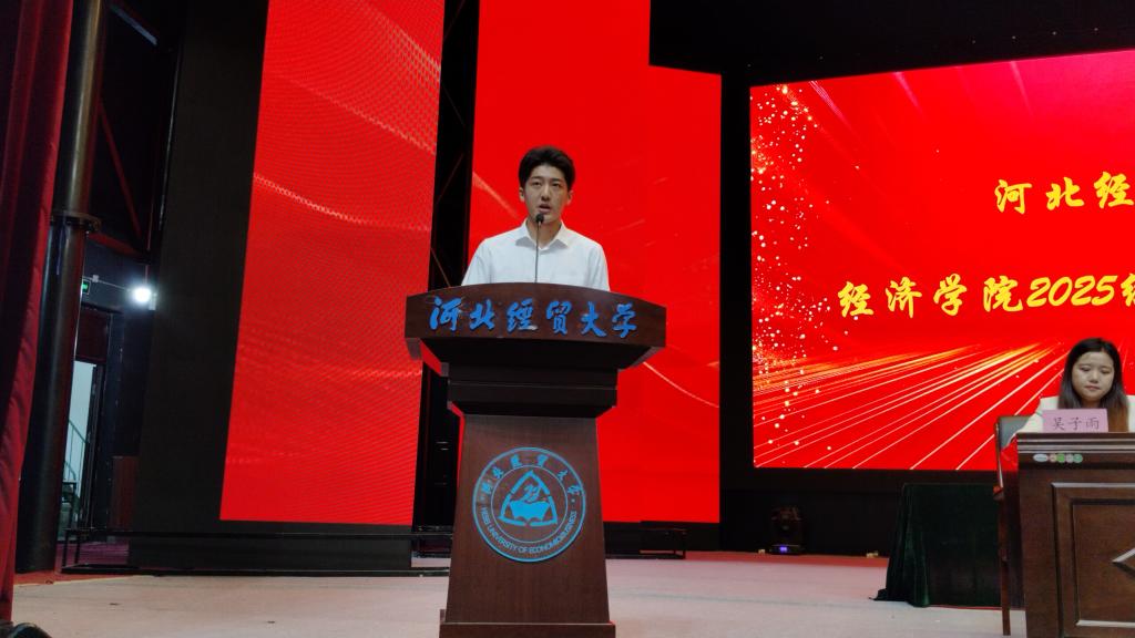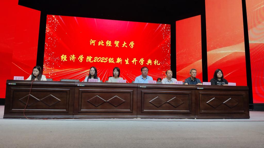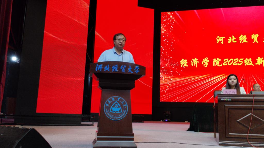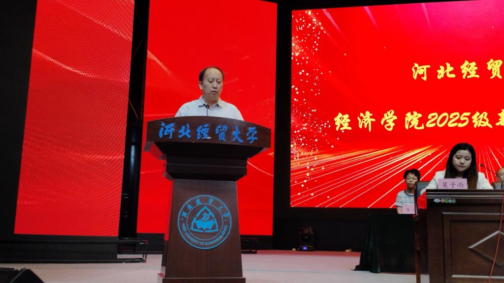 9月13日上午,太阳成tyc33455cc在校礼堂隆重举行2025级新生开学典礼。太阳成tyc33455cc党委书记刘振滨、副院长单海鹏、团委书记吴子雨、国际经济与贸易系主任张少楠、贸易经济系主任孙玉竹、经济系副主任戚成蹊、数字经济系副主任韩梦莹,2025级全体新生辅导员及全体新生齐聚现场,典礼由吴子雨主持。