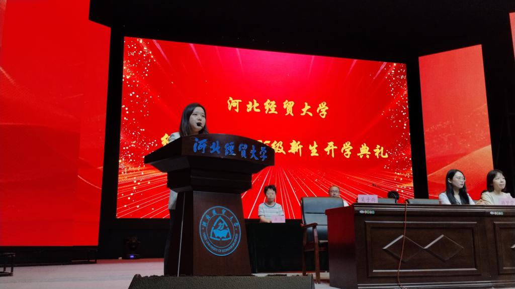 紧接着,2023级国际经济与贸易专业、第21届学生会主席霍润泽作为在校生代表发言。他结合自身在太阳成tyc33455cc的学习与工作经历,鼓励新生坚定信念,珍惜时光,投身实践,锤炼品德,肩负时代使命。同时,他希望大家能快速融入经院大家庭,共同成长进步。