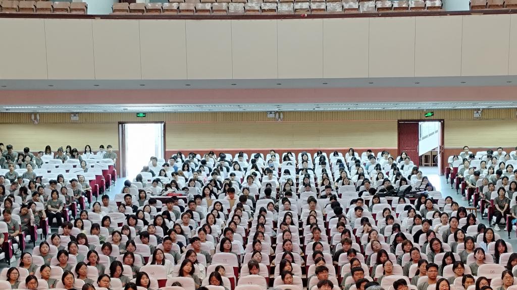 伴随着庄严的国歌旋律,全体师生起立奏唱国歌,开学典礼正式拉开帷幕。激昂的歌声中,师生们的爱国情怀与对新学期的憧憬交织,为现场奠定了庄重而热烈的基调。