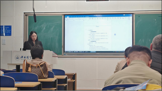 陈若愚老师针对课程教学共性问题提出改进方向。她指出部分课程存在教学资源分散、学生学习目标不清晰的问题,建议从“教学内容整合”与“学习引导设计”两方面优化:一方面梳理课程核心知识点,强化知识间的逻辑关联;另一方面通过案例导入、目标拆解,帮助学生明确学习意义,提升课堂专注度与参与感。