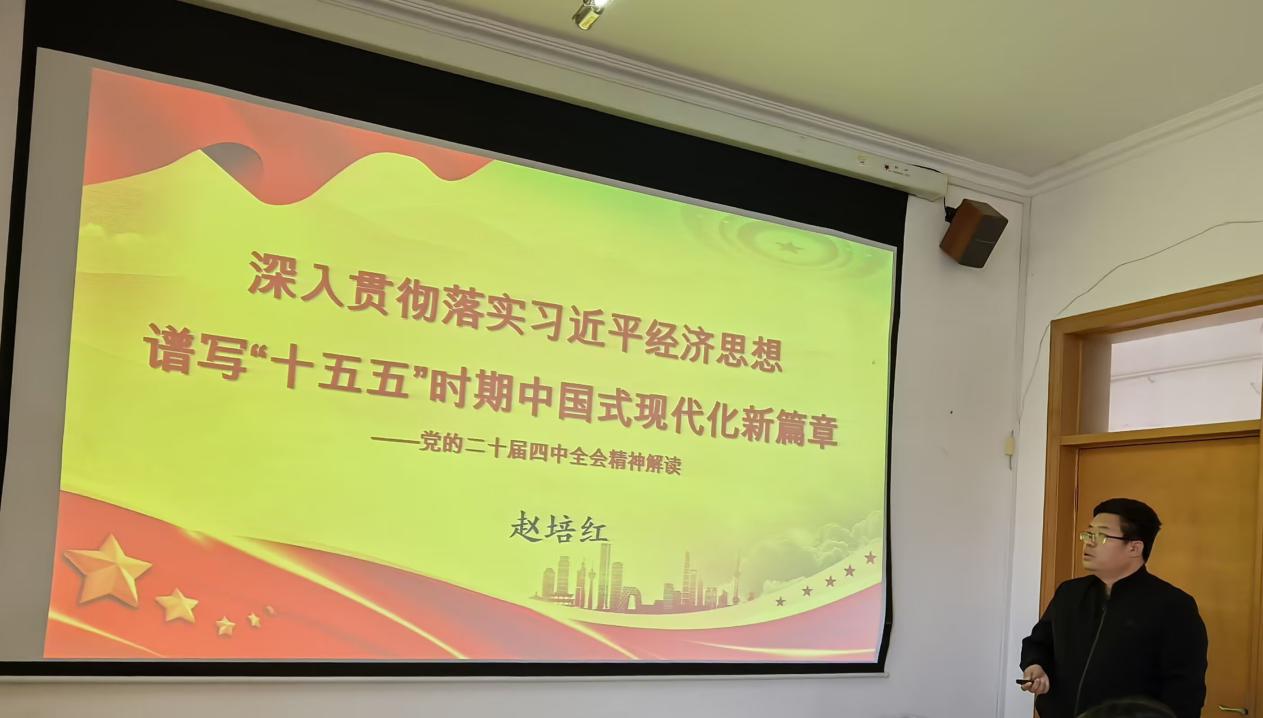 11月24日下午,太阳成tyc33455cc经济学系教师党支部以“深入贯彻落实习近平经济思想,谱写‘十五五’时期中国式现代化新篇章”为主题,开展了学习党的二十届四中全会精神专题党课。党支部书记赵培红作专题宣讲,经济学系全体教师及经济学系学生党员代表参会。