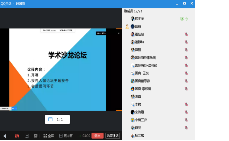 2020年7月5日上午,我院举办了“商学纵横”之国际商务研究生论坛。受疫情影响,此次论坛活动线上会议的方式召开。2019级国际商务专业的全体研究生参加了本次论坛。毕业生崔佳慧、吴若楠对报告论文进行了点评并分享了考博经验。