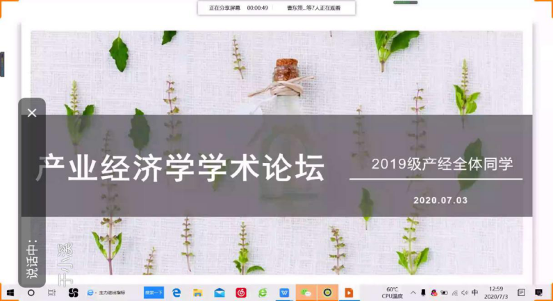 2020年7月3日,我院举办了“商学纵横”之产业经济学研究生论坛。受疫情影响,此次论坛活动线上会议的方式召开。2019级产业经济学专业全体研究生参加了本次论坛,2018级刘天奥、2017级孙琳对报告论文进行了点评。