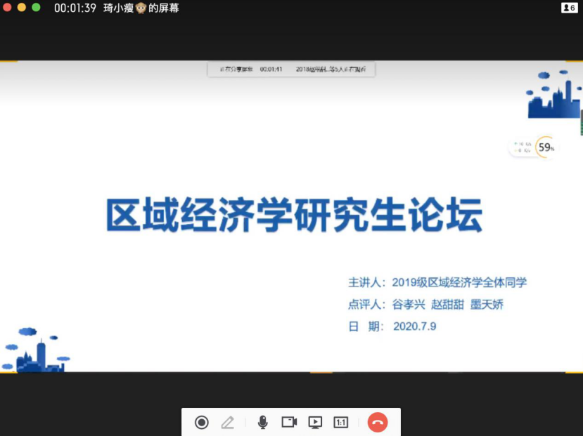 7月9日上午,商学院举办了“商学纵横”之理论经济学研究生论坛。受疫情影响,此次学术活动以线上会议的方式进行。2019级区域经济学3名研究生参加了本次论坛。2018级研究生谷孝兴、赵甜甜、墨天娇对论坛报告进行了点评。