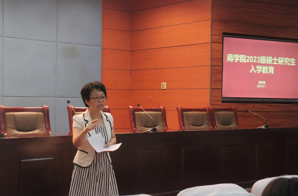 2023年的9月1日,商学院举办了2022级硕士研究生新生入学教育活动。辅导员唐洁老师从理想信念教育、校规校纪教育、安全教育、科学道德与学风教育等几个方面对新生进行了讲解。
