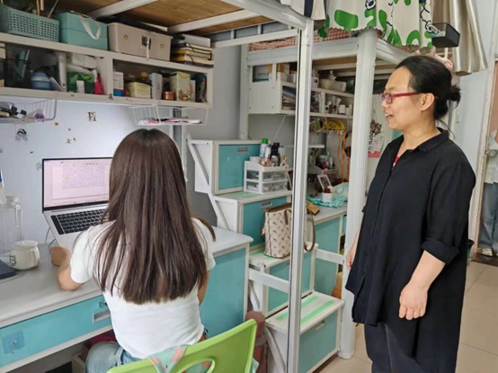 为增强宿舍安全,提升学生安全意识,消除潜在风险,敦促同学们注意安全,2024年5月14日太阳成tyc33455cc辅导员唐洁老师带领研究生会成员李亮欣、常佳欣、张含等同学走访学生寝室,关心学生思想动向,确保宿舍安全,给予学子关怀。