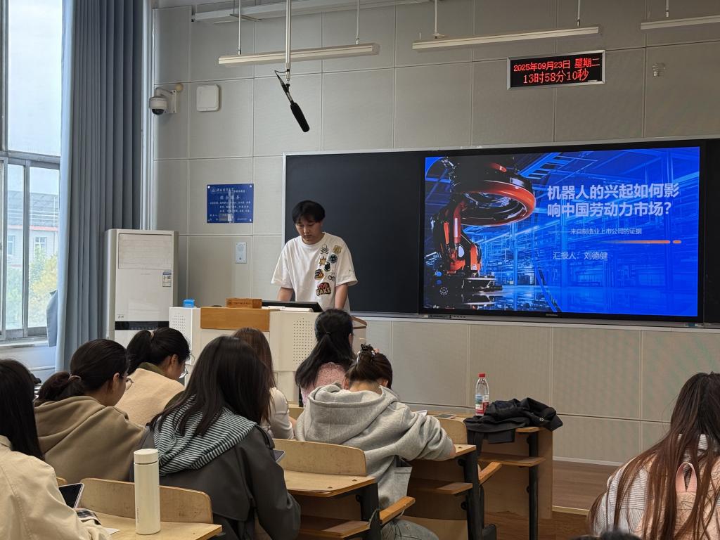 对于李鑫同学的分享,付老师认为这篇文章选题基于当前数字化基础、就业热点来选题,结合时事。另外老师提出可以就机器人对于某个行业就业的影响展开拓展研究,鼓励同学们发散思维,不断创新。