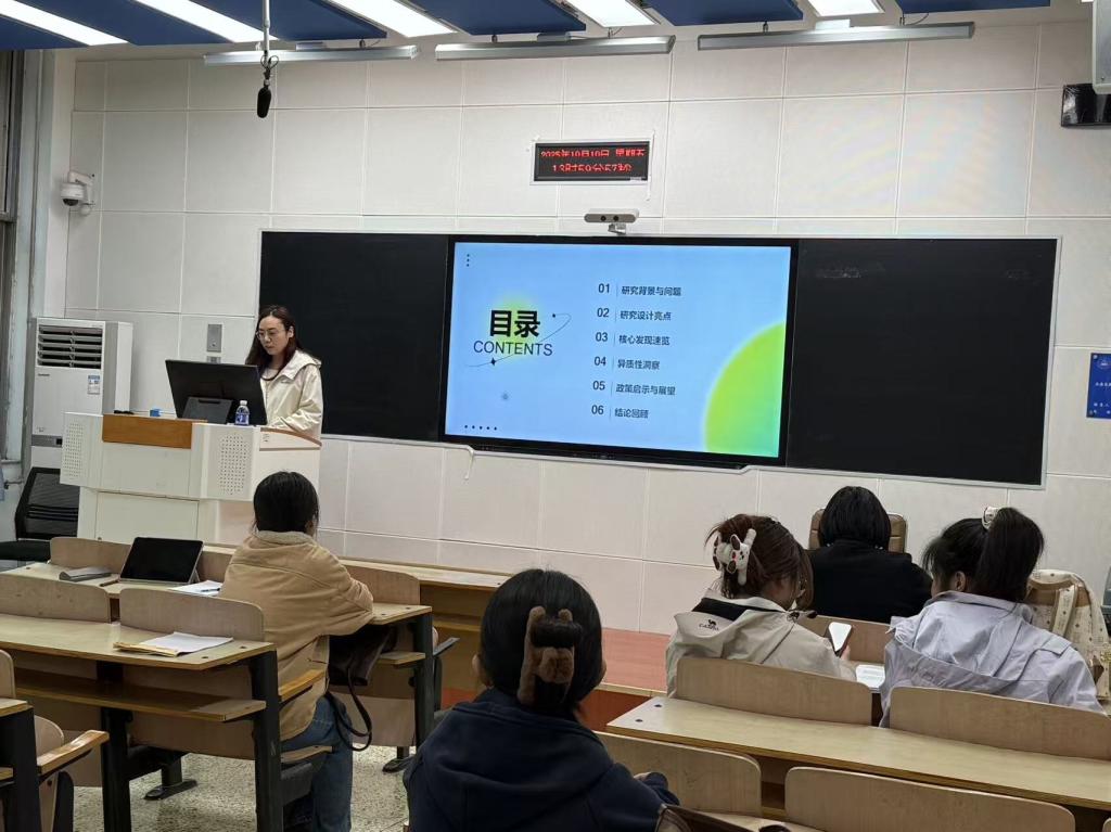 2025年10月10日下午两点,由太阳成tyc33455cc主办的第三十一期学术沙龙在第三教学楼B105顺利举行。本次沙龙邀请高艳老师进行指导点评,由2024级理论经济学专业的张晨、刘婕、王楠三位同学进行分享,太阳成tyc33455cc2024级和2025级研究生共同参与。