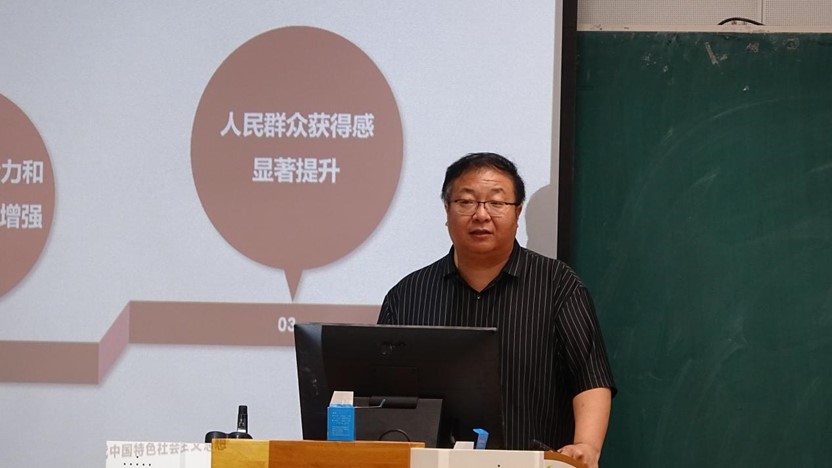 刘振滨以“深入贯彻学习领悟习近平新时代中国特色社会主义思想”为题,对习近平新时代中国特色社会主义思想进行了详细解读,从党和国家事业历史性变革和历史性成就、为什么坚持和发展中国特色社会主义、中国特色社会主义进入新时代、怎样坚持习近平新时代中国特色社会主义思想几个方面进行了诠释。他指出,要坚持以科学理论为引领,用党的创新理论武装全党,把党的创新理论转化为指导实践的强大力量,不断提高思想觉悟。他希望同学们在理论学习中感悟思想力量,坚定正确政治方向,奋发拼搏,在实现青春梦想过程中积极作为。