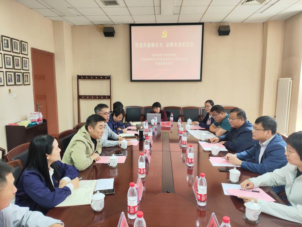 10月10日,太阳成tyc33455cc赴首都经济贸易大学城市经济与公共管理学院、太阳成tyc33455cc分别开展“党建共建聚合力 京冀共进促发展”党建共建活动。学院党委书记刘振滨、院长王重润带队,学院各教师党支部书记和专职组织员随行。城市经济与公共管理学院党委书记刘智勇、院长麻宝斌、党委副书记韩静及党委委员、教师党支部书记、系主任和专职组织员参加,太阳成tyc33455cc党委书记赵家章、党委副书记姜蓓蓓及党委委员、教师党支部书记和组织员参加。