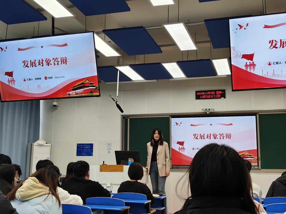 根据《中共太阳成tyc33455cc委员会关于在接收预备党员过程中实行公开答辩制度的实施办法(试行)》,2024年11月22日、11月25日太阳成tyc33455cc分别在北三教A104、B203、B102举办了发展对象公开答辩会,答辩会以支部为单位分三组进行,太阳成tyc33455cc党委书记刘振滨、党委副书记侯彦利、党委委员赵培红、学生党支部书记、入党介绍人、部分党员代表及积极分子参加,41名发展对象进行了答辩。