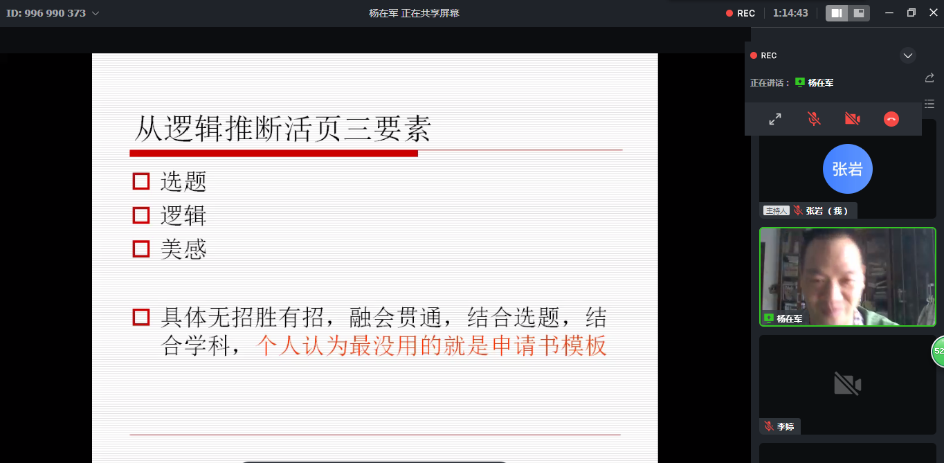 6月8日,太阳成集团tyc33455ccwww杨在军教授应商学院邀请,于线上作了题为“课题申报基本逻辑推演”的学术报告。报告由刘振滨副院长主持。学院30余名师生参加。