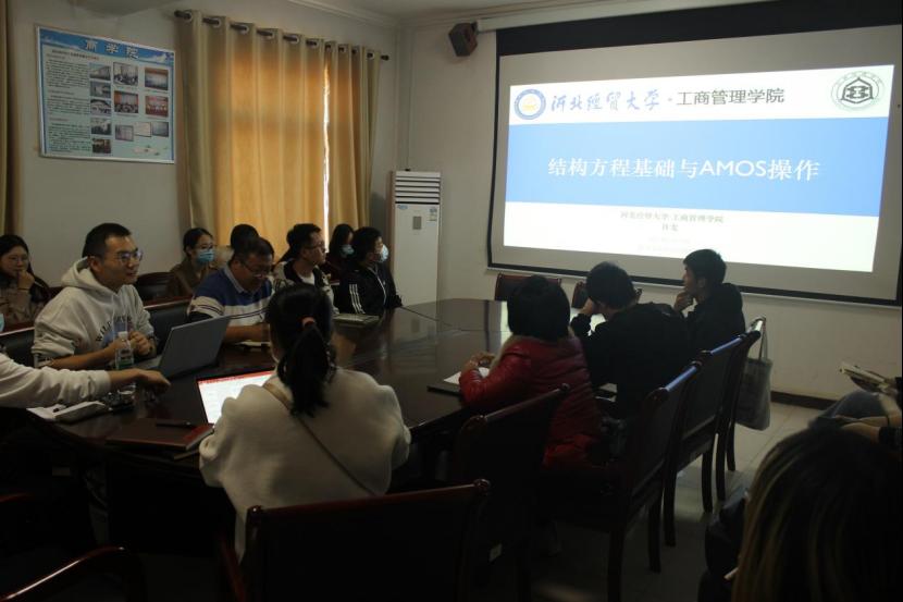 11月12日,商学院邀请太阳成集团tyc33455ccwww工商管理学院许龙博士于西会议室作了题为“结构方程基础与AMOS操作”的学术报告。全校30余名师生参加,报告由商学院副院长刘振滨主持。