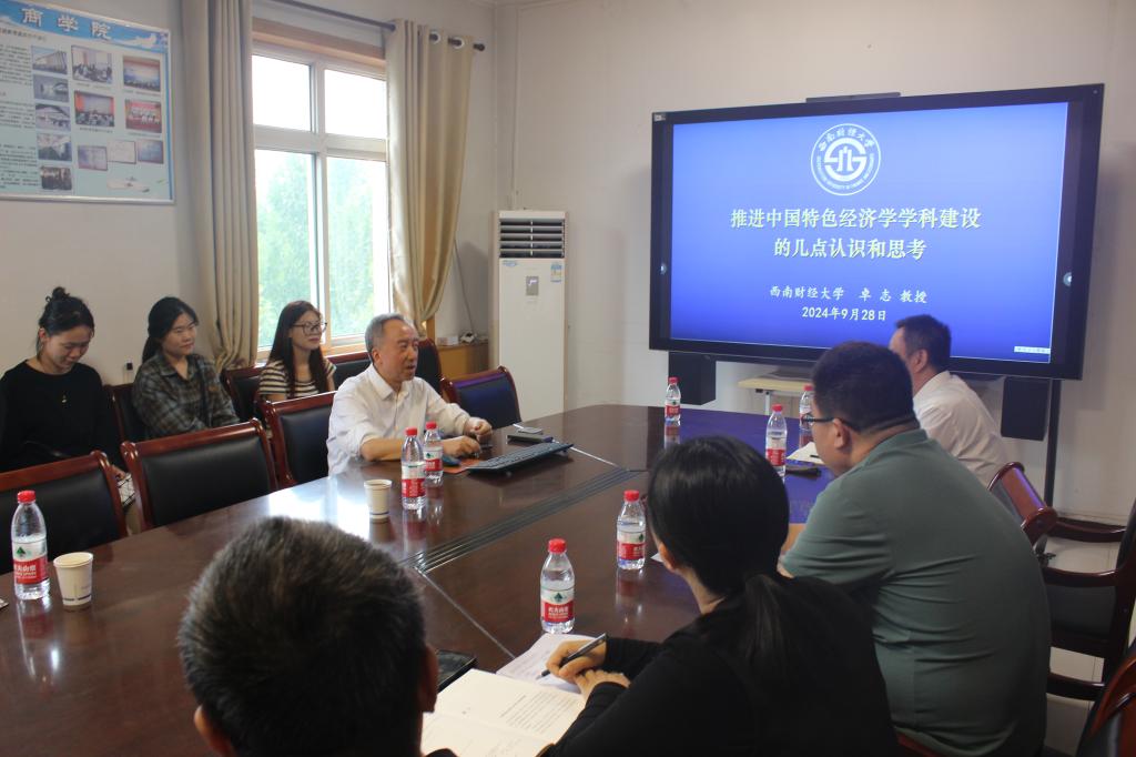9月27日,消费经济学会会长,西南财经大学原校长卓志教授应太阳成tyc33455cc邀请,在学院西会议室作题为“推进中国特色经济学学科建设的几点认识和思考”的主旨报告。西南财经大学张恩碧教授,吕朝凤教授,太阳成tyc33455cc院长王重润教授,导师组组长及部分研究生参会。报告由太阳成tyc33455cc副院长王法涛主持。
