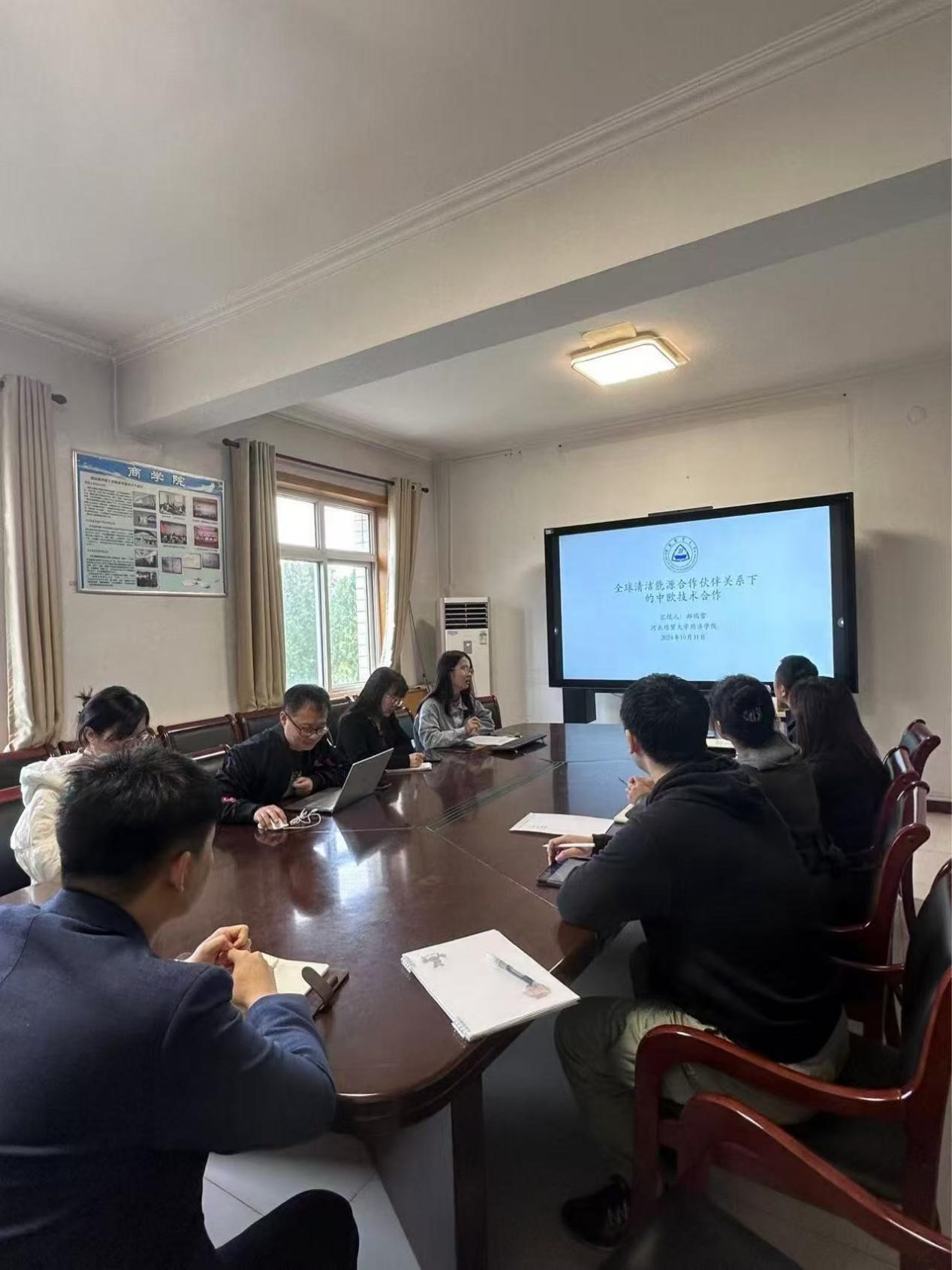 10月31日,太阳成tyc33455cc郝瑞雪博士于西会议室作了题为“全球清洁能源合作伙伴关系下的中欧技术合作”的学术报告。报告由太阳成tyc33455cc副院长王法涛主持,学院30余名师生参加。