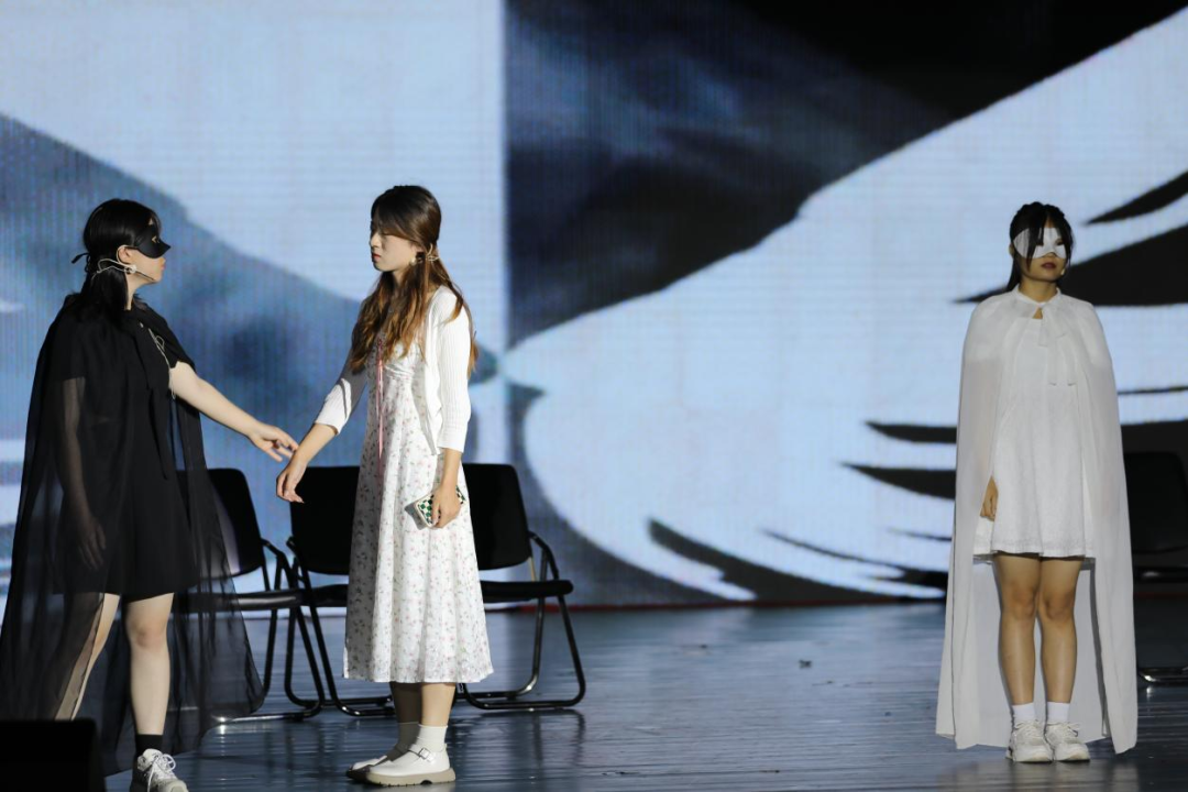 心理情景剧《朋友圈》以新时代大学生沉溺在网络世界里,以掩饰自己的不自信和内心的空虚为背景,聚焦网络世界和现实生活的矛盾,运用对白、独白、多重替身等心理剧技术和音乐、舞蹈等艺术手法演绎学生的内心世界,引导学生勇敢走出网络世界,面对现实中的自己,不为朋友圈中的美好幻影所禁锢。该剧是我校第十届校园心理剧大赛一等奖获奖作品,后经学生处、商学院和相关专家对剧本内容和舞台展示等方面进行精心指导,对作品进行再次打磨,最终选推参加第五届全国高校心理情景剧现场决赛。