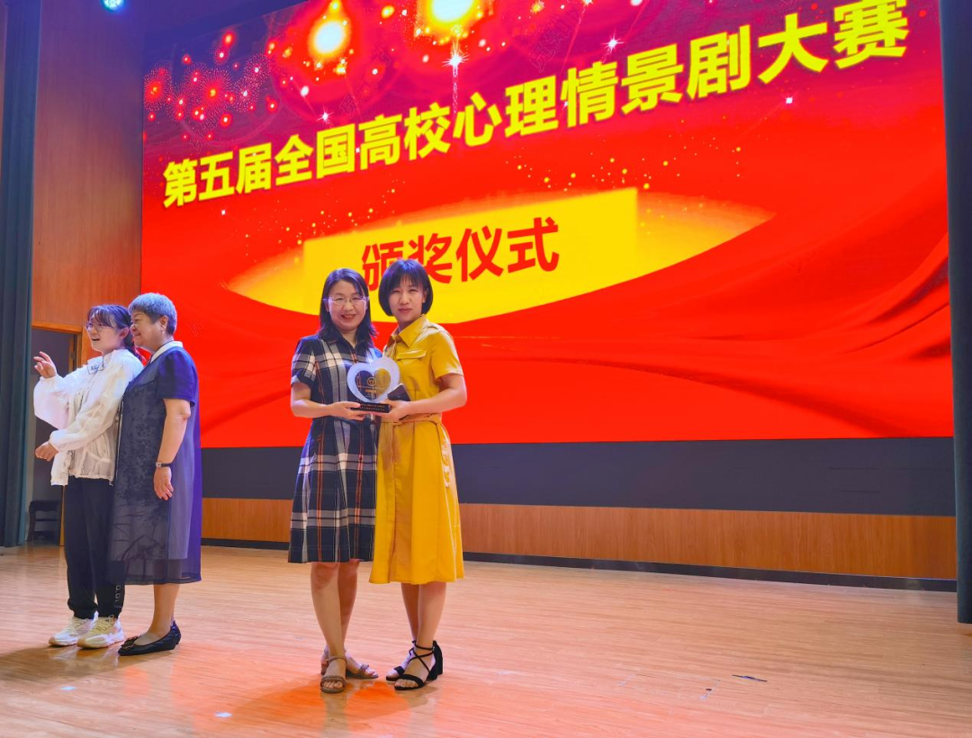 7月22日和23日,第五届全国高校心理情景剧大赛决赛在济南举行,活动主题为“聚心凝爱 向阳逐梦”。中国心理学会心理危机干预工作委员会和全国高校心理委员研究协作组主办,济南工程职业技术学院和全国高校心理委员工作平台承办,全国280余所高校的287个参赛剧目经过初赛后共有26个剧目参加本次大赛决赛的现场展演。决赛共评出十佳剧目,优秀剧目,最佳男、女主角,最佳男、女配角等奖项。我校学生处选推的商学院心理情景剧《朋友圈》以初赛第14名的优异成绩入选第五届高校心理情景剧百佳剧目,进入决赛进行现场展演,最终获全国高校心理情景剧优秀剧目奖。
