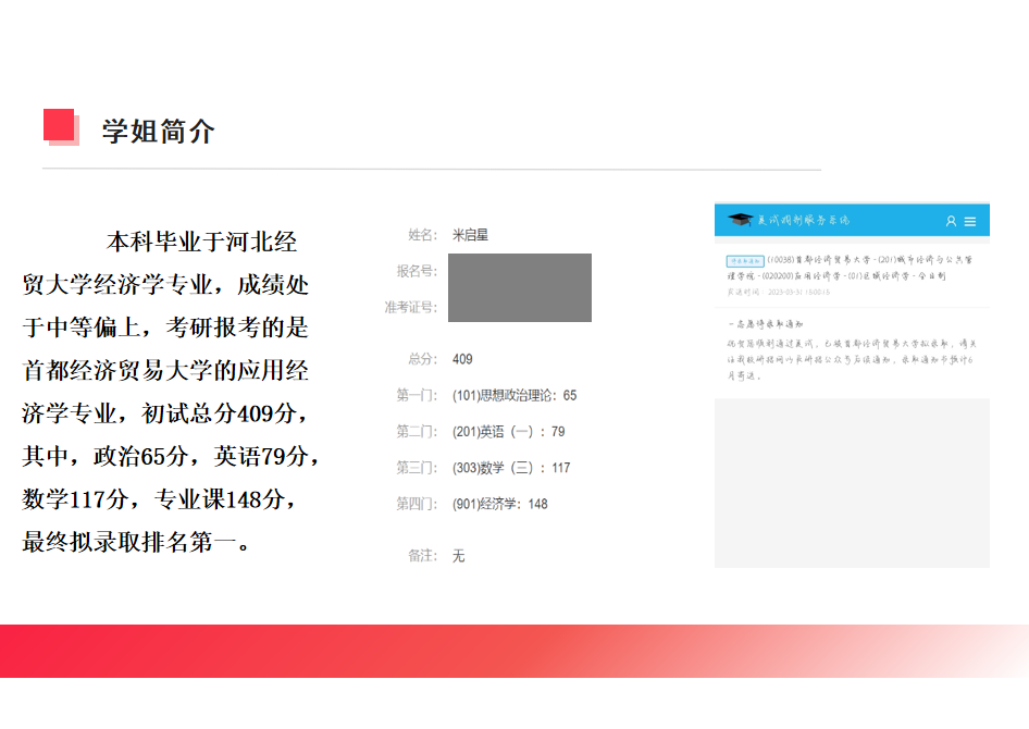录取院校及专业:首都经济贸易大学应用经济学专业