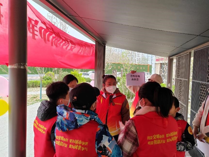 2023年3月25日,商学院于石家庄市新华区明珠花苑社区开展“红领巾社区行--探秘‘家门口‘文明”志愿服务活动。本次活动由萤火志愿服务大队组织,2022级经济1班18名青年志愿者参加。
