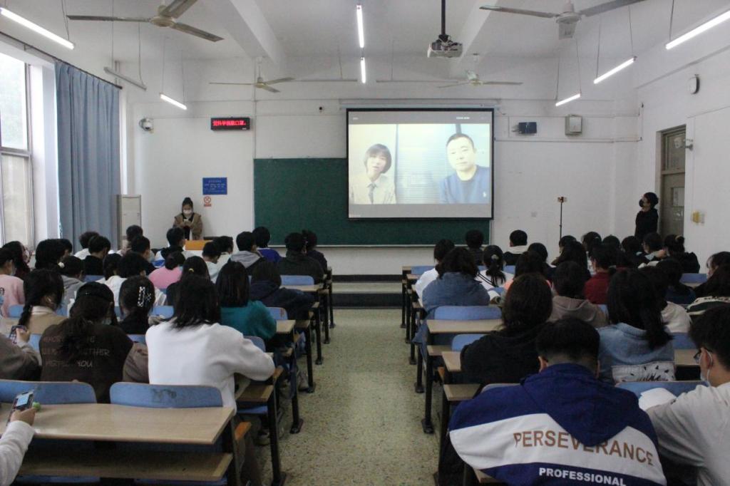 10月21日下午4点,商学院在北三教B202利用腾讯会议以线上线下相结合的方式举办了第三期“大咖面对面,不一样的思政课”校企合作和优秀校友的思政课堂活动。活动由河北爱德会展服务有限公司崔翔勇总经理主讲,商学院党委副书记侯彦利、商学院2022级经济1、2班的学生和线上数名学生参加本次活动。会议由商学院就业工作负责人李婷主持。